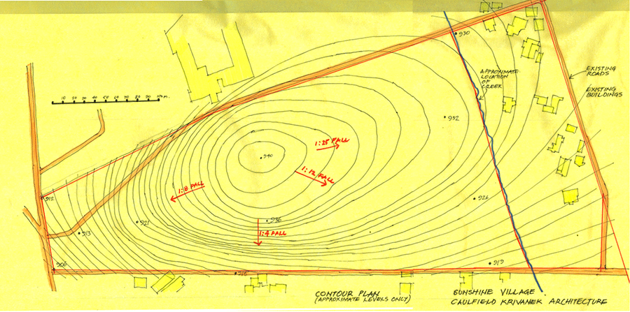 The Sunshine Village Green - Google images show the site is not entirely flat, with parts of it appearing to have slopes up to 1 in 4. This information is very general and needs to be verified by on site surveys later on.